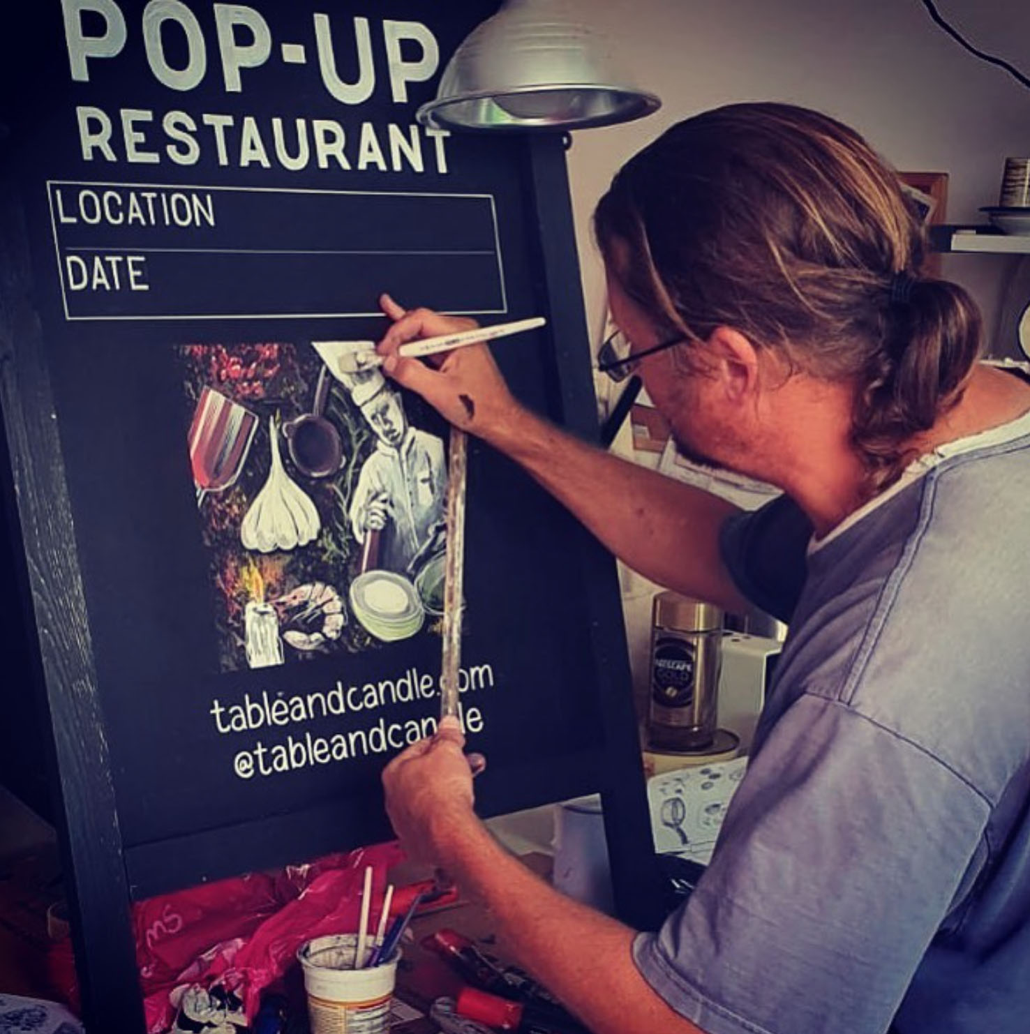 I have a long background in graphic design and trained in the early pre-MAC days honing skills of drawing/setting out typography and illustrations as a visualiser. I got out out of that industry some 10+ years ago working long hard hours behind a MAC on pretty 'forgetable projects'. I fancied a career change! Fast forward a few years and I'm driving up and down the Sussex countryside delivering artisan baked goods!.. I started to notice the blackboards around pubs & restaurants... some very well done and some NOT so! So I busied myself in the afternoons learning a new skill of 'chalkboarding' in these pubs and restaurants until it eventually became my full time profession. I haven't looked back since! I love the creative process, drawing on those creative skills I learned where it all began... sketching out scaled typographical layouts and a lot of doodling! adam@chalkyads.co.uk 07878 040360