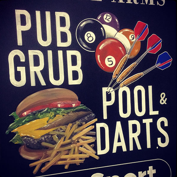 As a frustrated artist working in the graphic design industry for many years... I eventually dropped the MAC & MOUSE in favour of some brushes and a mahl stick! Chalkboards which are actually painted and penned in acrylics (and NOT chalk) lend themselves to quick 'n' slick illustration styles... not a million miles from the 'magic-marker-visualisers' I'd idolised in Advertising Agencies and Design Studios in London's West End where I cut my teeth back in the day.